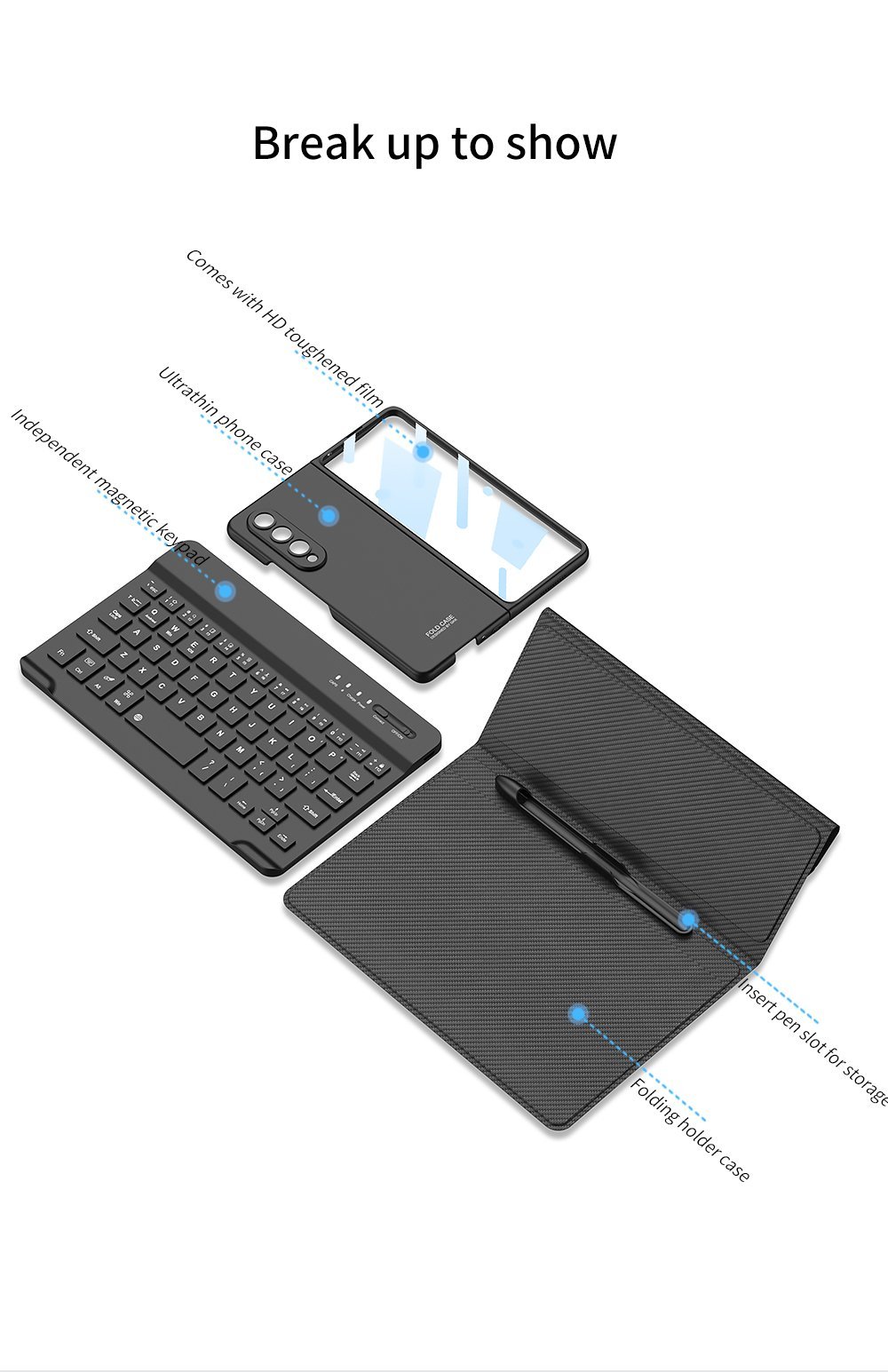 Compatible with Samsung Z Fold 2/Z Fold 3/Z Fold 4 case:This product shipment includes: cell phone keyboard case + cell phone protective case