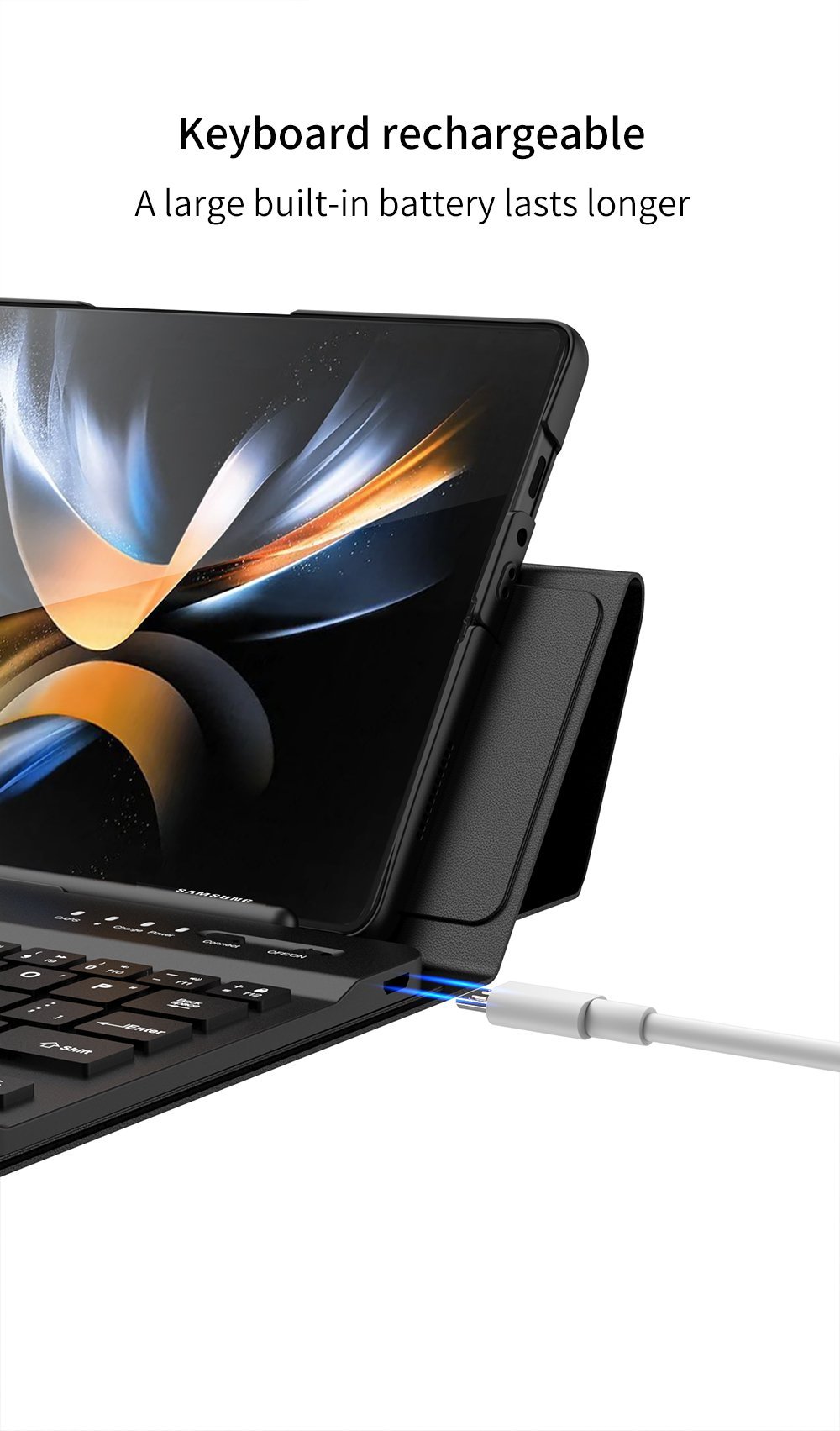 Leather Phone Keyboard Case:selection of leather material,transfer delicate touch between the palm,light luxury and elegant experience;magnetic detachable Keyboard Cover,independent keyboard can be detached and used